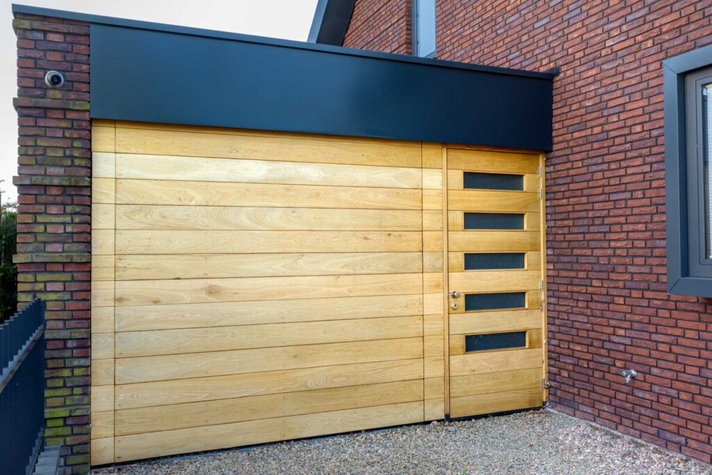Het is belangrijk om te weten dat wij alléén de garagedeur leveren en monteren en daarmee de sterke basis verzorgen. De aannemer draagt dan zorg voor het bevestigen van de gewenste (houten) bekleding en exclusieve afwerking. Op die manier kan iedere partij doen waar zijn kracht ligt: wij in techniek en constructie, de aannemer in afwerking en uitstraling.